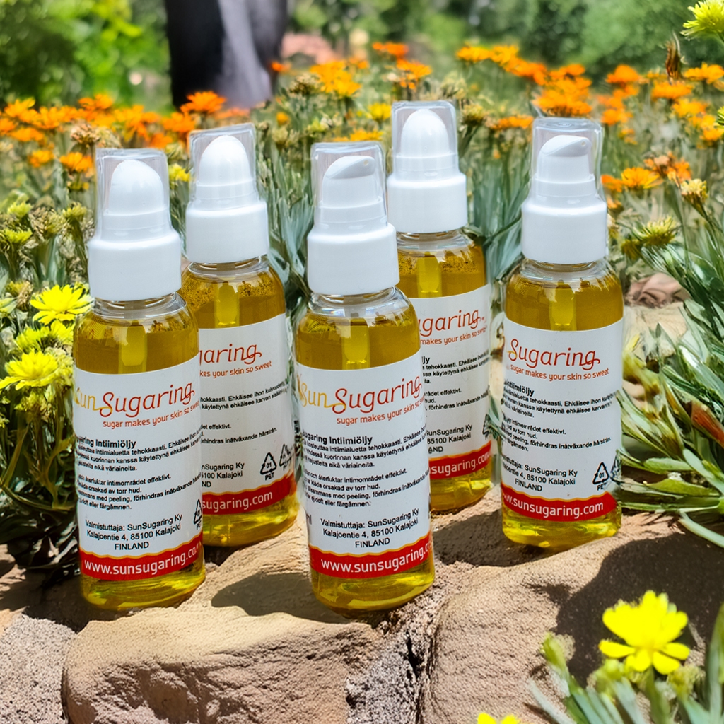 Heti sokeroinnin jälkeen iholle laitetaan Aloeverageeliä, joten silloin Intiimiöljyä ei vielä laiteta. Heti puolen vuorokauden kuluttua sokeroinnista on hyvä aloittaa ihoalueen kosteutus öljyllä. Tämä pitää sokeroidun ihon pinnan kimmoisana, mikä puolestaan ehkäisee tehokkaasti karvojen sisäänkasvua.